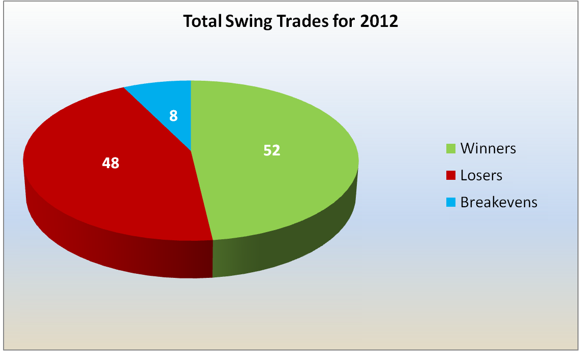 * The above results are for the period shown above and are hypothetical based upon a subscriber having a January starting account value of $50,000 and following all swing trade ideas conveyed by ProfessionalStockTraderLive.com ("PSTL") with the same position size, entry and exit prices. All of our swing trade ideas assume a 100% position equaling 1,000 shares or 10 option contracts. It should not be assumed these swing trading ideas are being executed in a live account by PSTL. Results are net of transaction fees of $10 per round trip trade but not PSTL subscription fees. The results have not been audited. Errors could have occurred in the collection of data or in the calculations. The results of swing trades for more recent periods may vary significantly from these shown.
