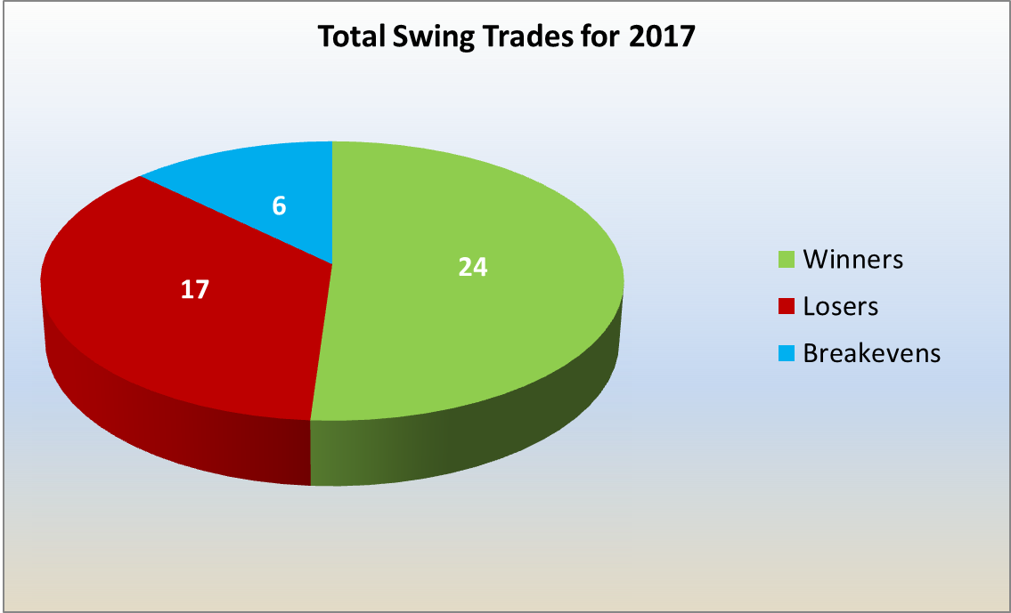 * The above results are for the period shown above and are hypothetical based upon a subscriber having a January starting account value of $50,000 and following all swing trade ideas conveyed by ProfessionalStockTraderLive.com ("PSTL") with the same position size, entry and exit prices. All of our swing trade ideas assume a 100% position equaling 1,000 shares or 10 option contracts. It should not be assumed these swing trading ideas are being executed in a live account by PSTL. Results are net of transaction fees of $10 per round trip trade but not PSTL subscription fees. The results have not been audited. Errors could have occurred in the collection of data or in the calculations. The results of swing trades for more recent periods may vary significantly from these shown.